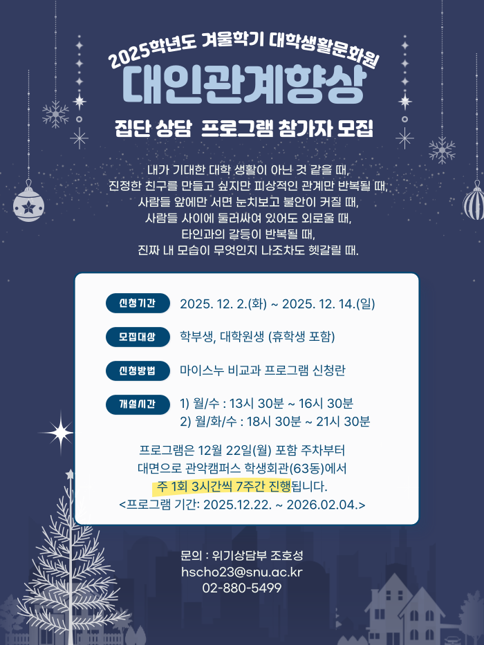 2025학년도 겨울학기 대인관계 향상 집단상담 프로그램을 신청하세요 :)